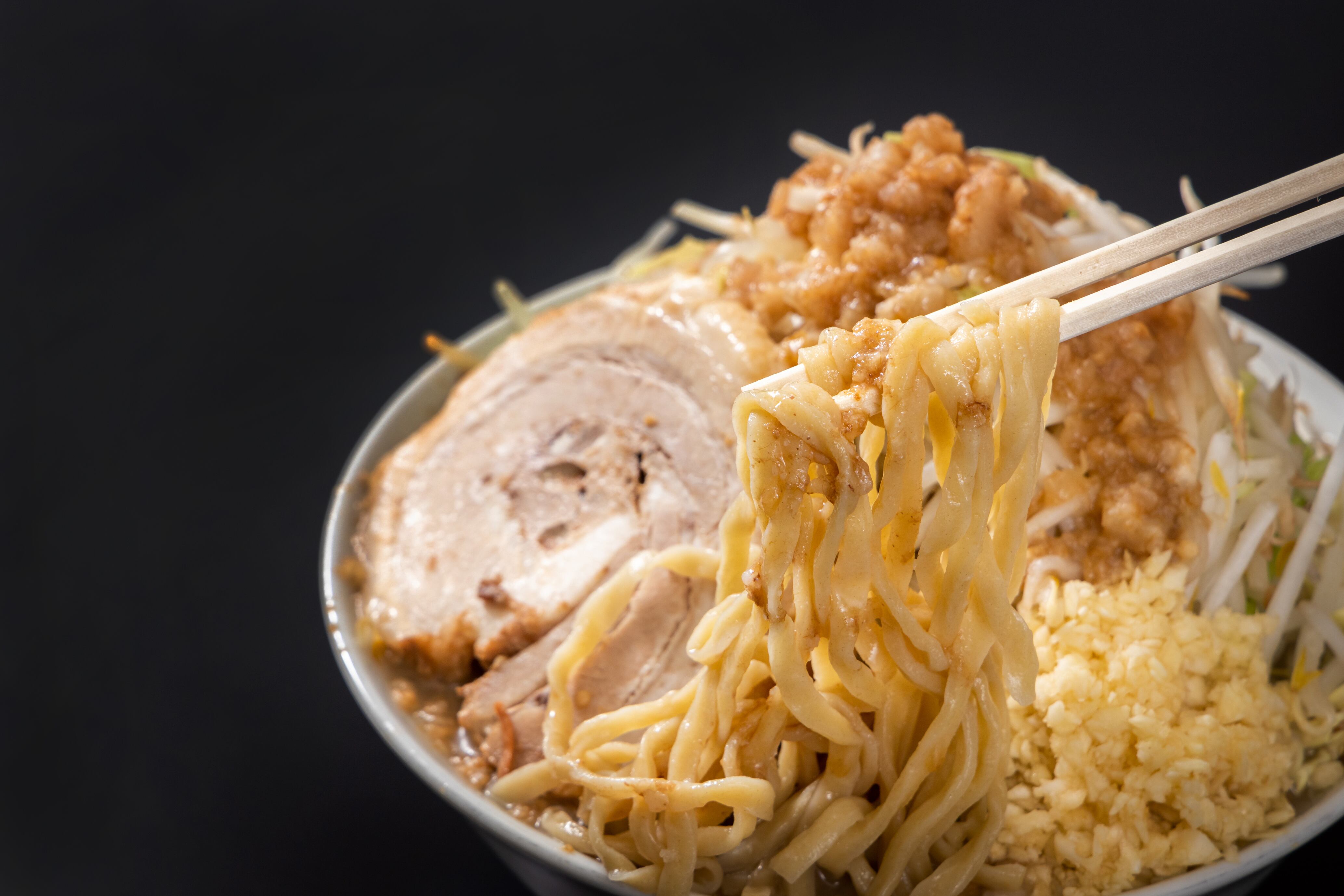 ワシワシの麺との相性バッチリ!トッピングに多めの野菜を加えて召し上がってください!