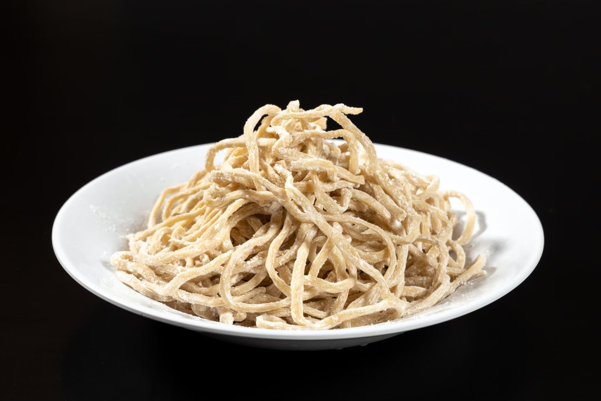 平打ちの太麺は噛むたびに口の中いっぱいに広がる小麦の香りと絶妙なバランスに仕上げています。