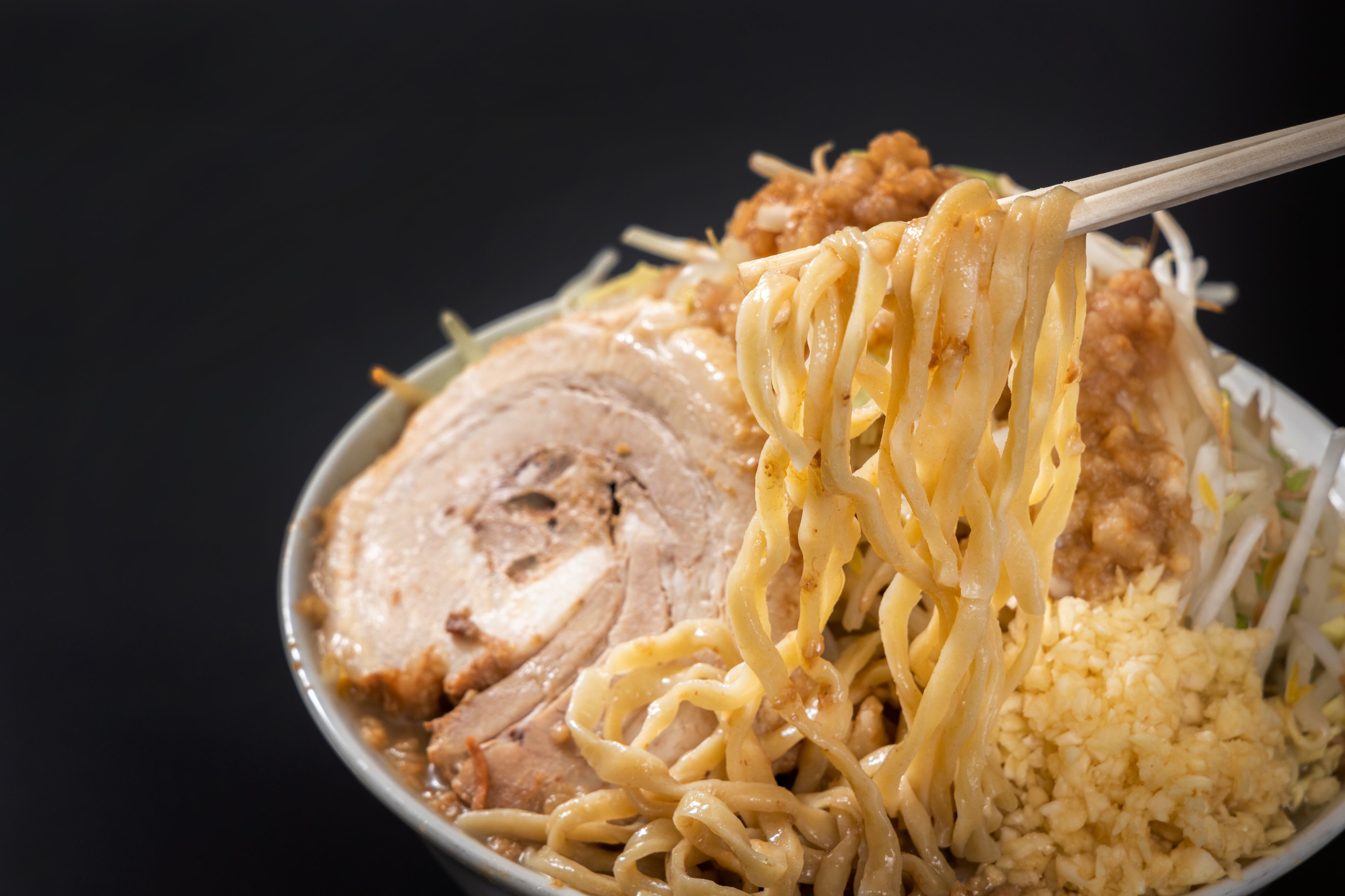 平打ちの太麺は噛むたびに口の中いっぱいに広がる小麦の香りと絶妙なバランスに仕上げています。ワシワシの麺との相性バッチリ!トッピングに多めの野菜を加えて召し上がってください!